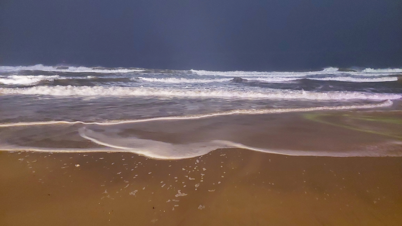 ↑산더미 같은 파도지만 해변에 닿으면 부드럽게 모래알을 씻고 밀려간다.