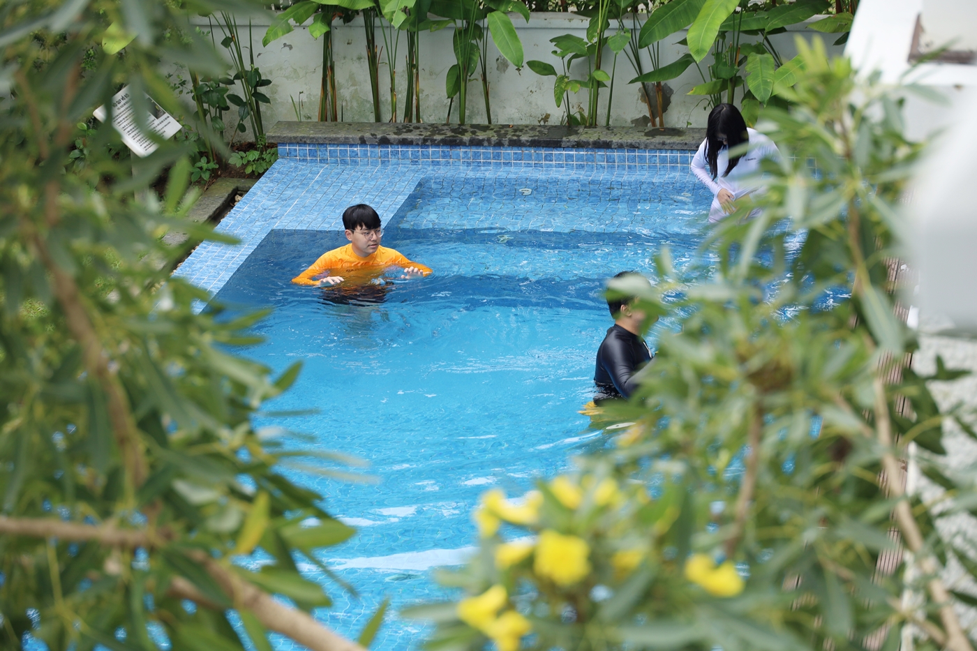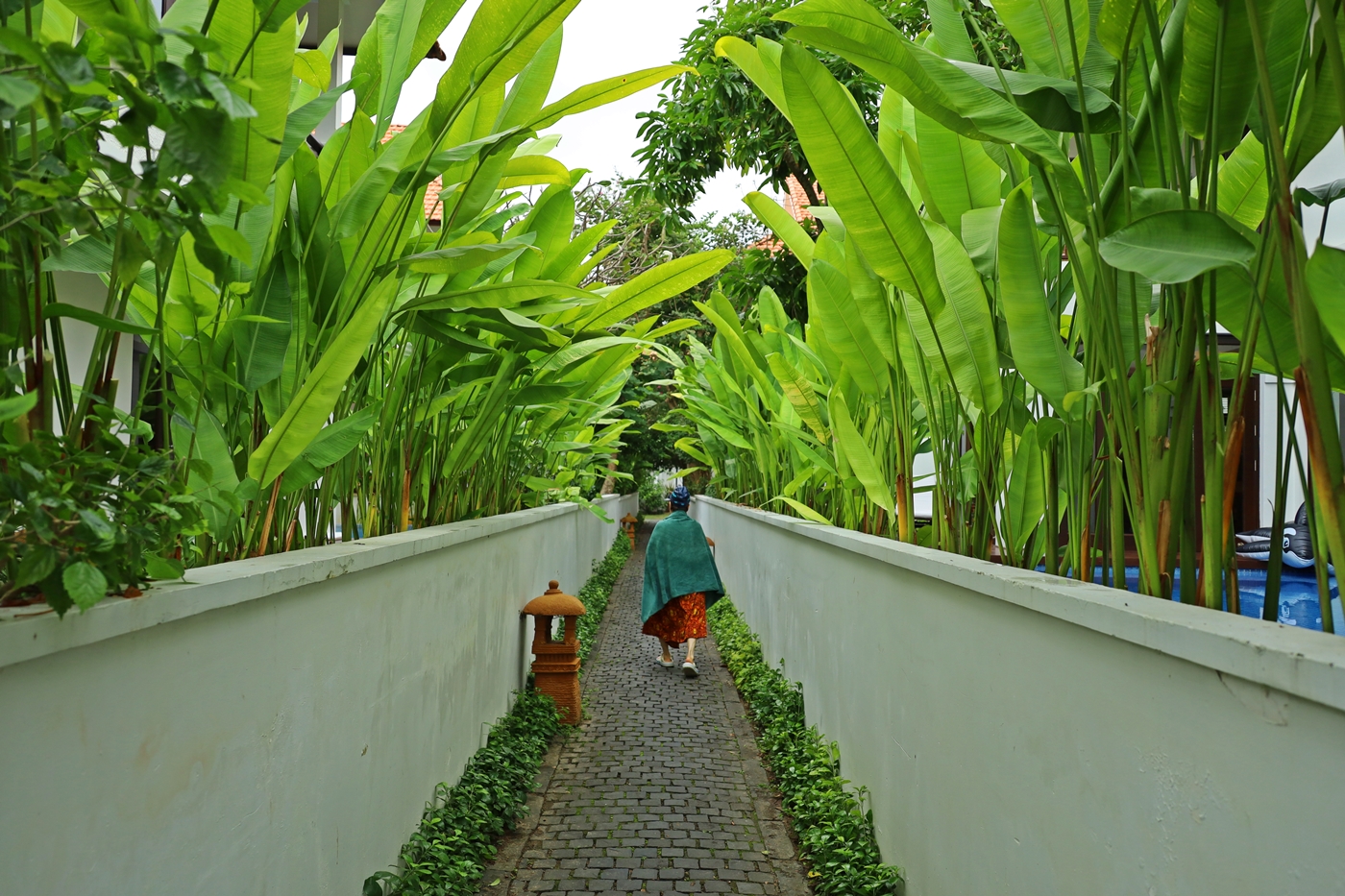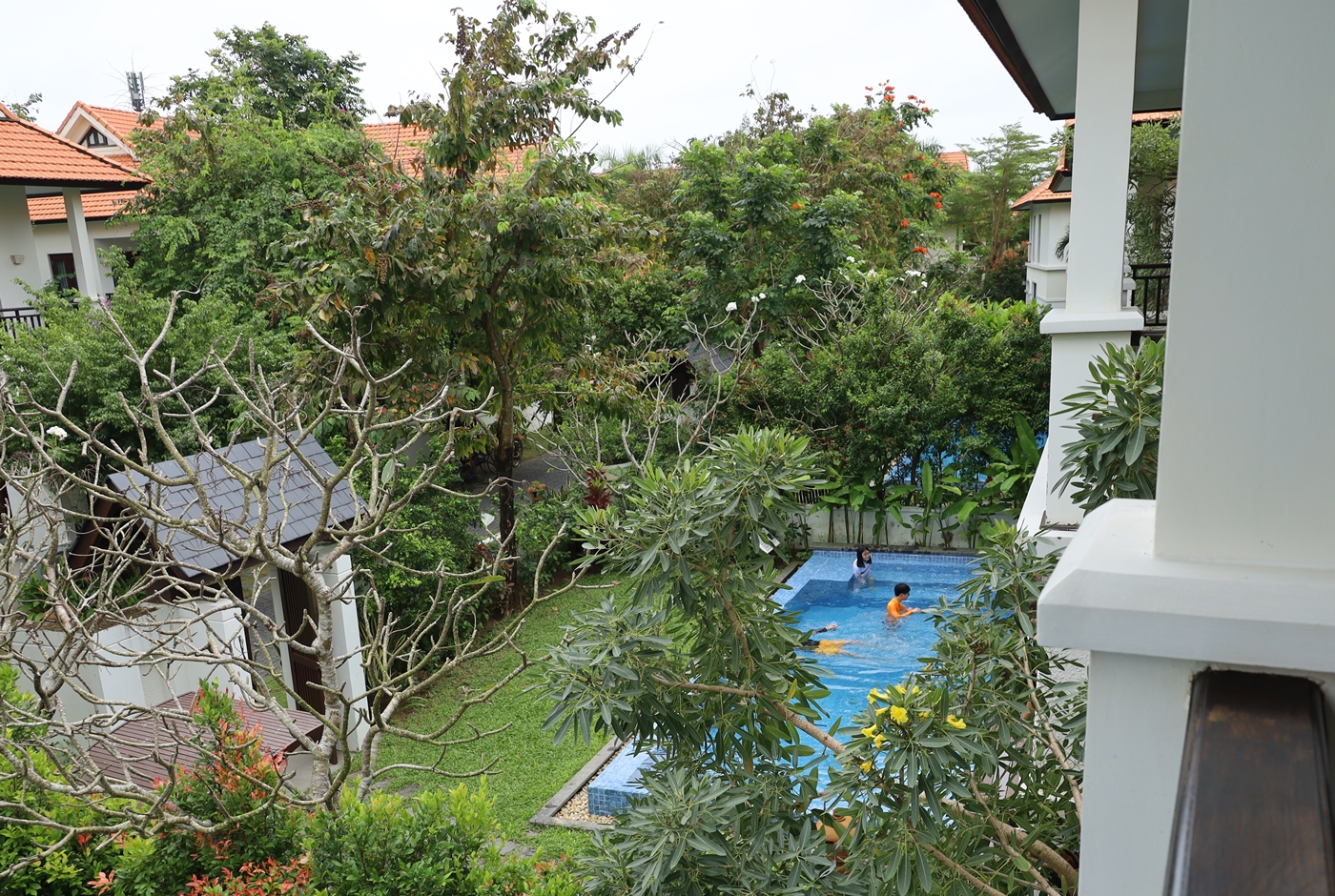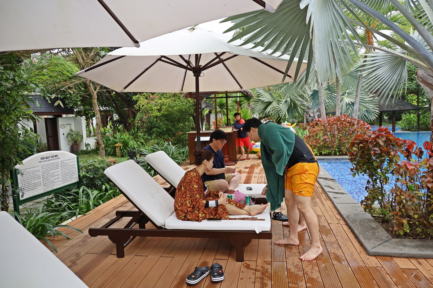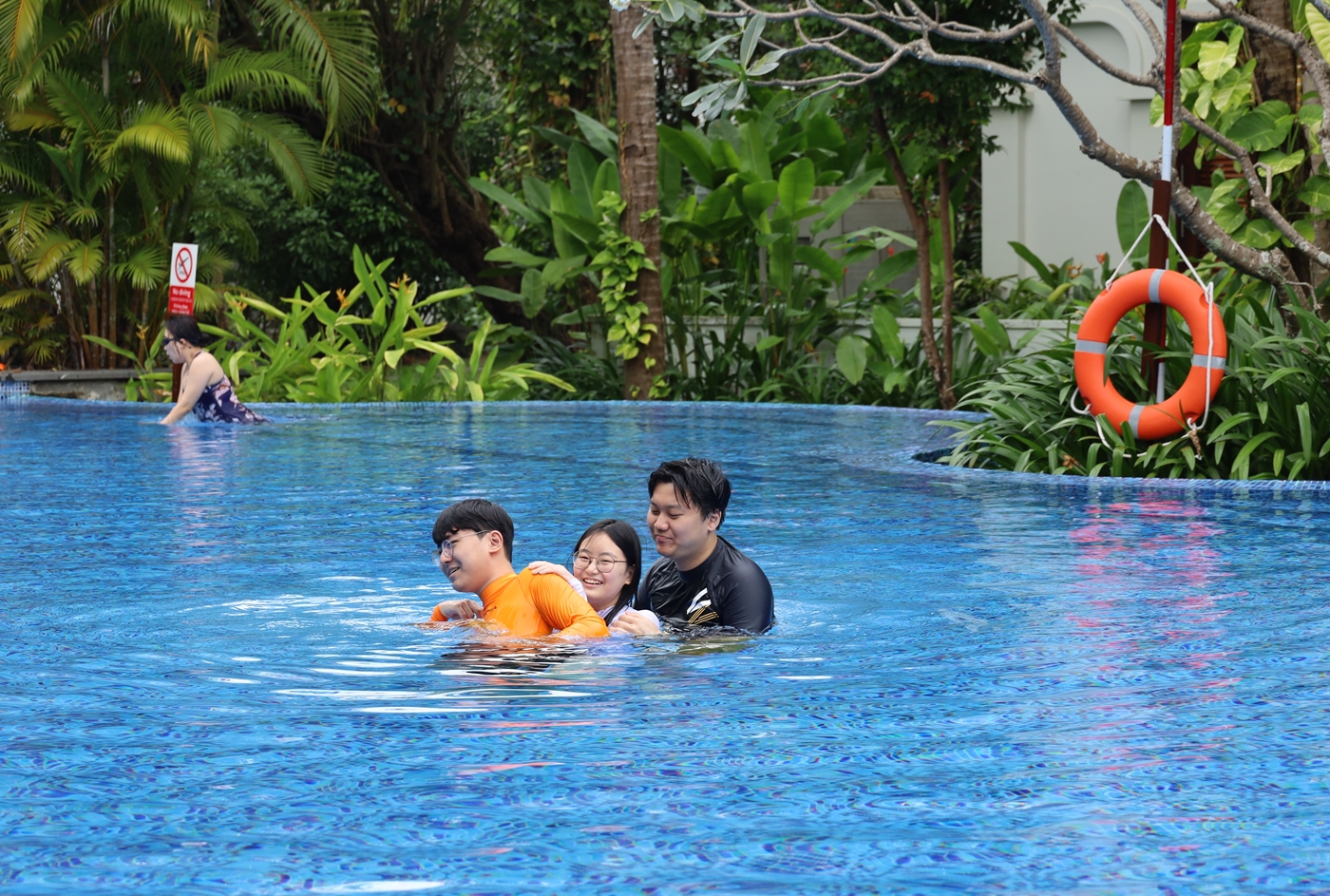 ↑마침 비가 그쳐 우리는 개인 풀장을 뒤로 더 넓은 리조트 내 가까운 수영장을 찾아 가기로 하고 이동했다.
