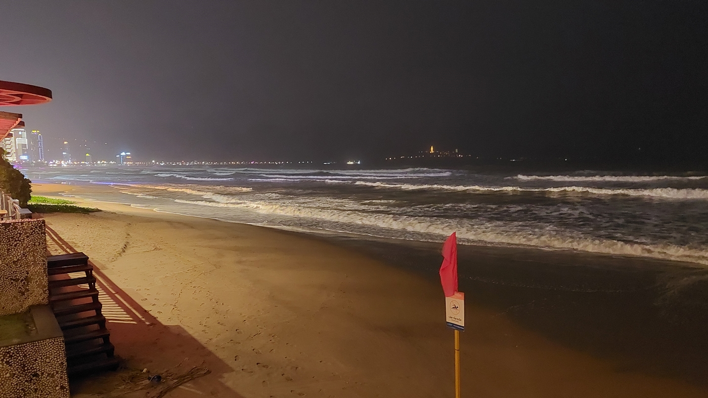 ↑카메라를 숙소에 놓고 와 폰으로 미케비치 해변가 야간 풍경을 담았다.