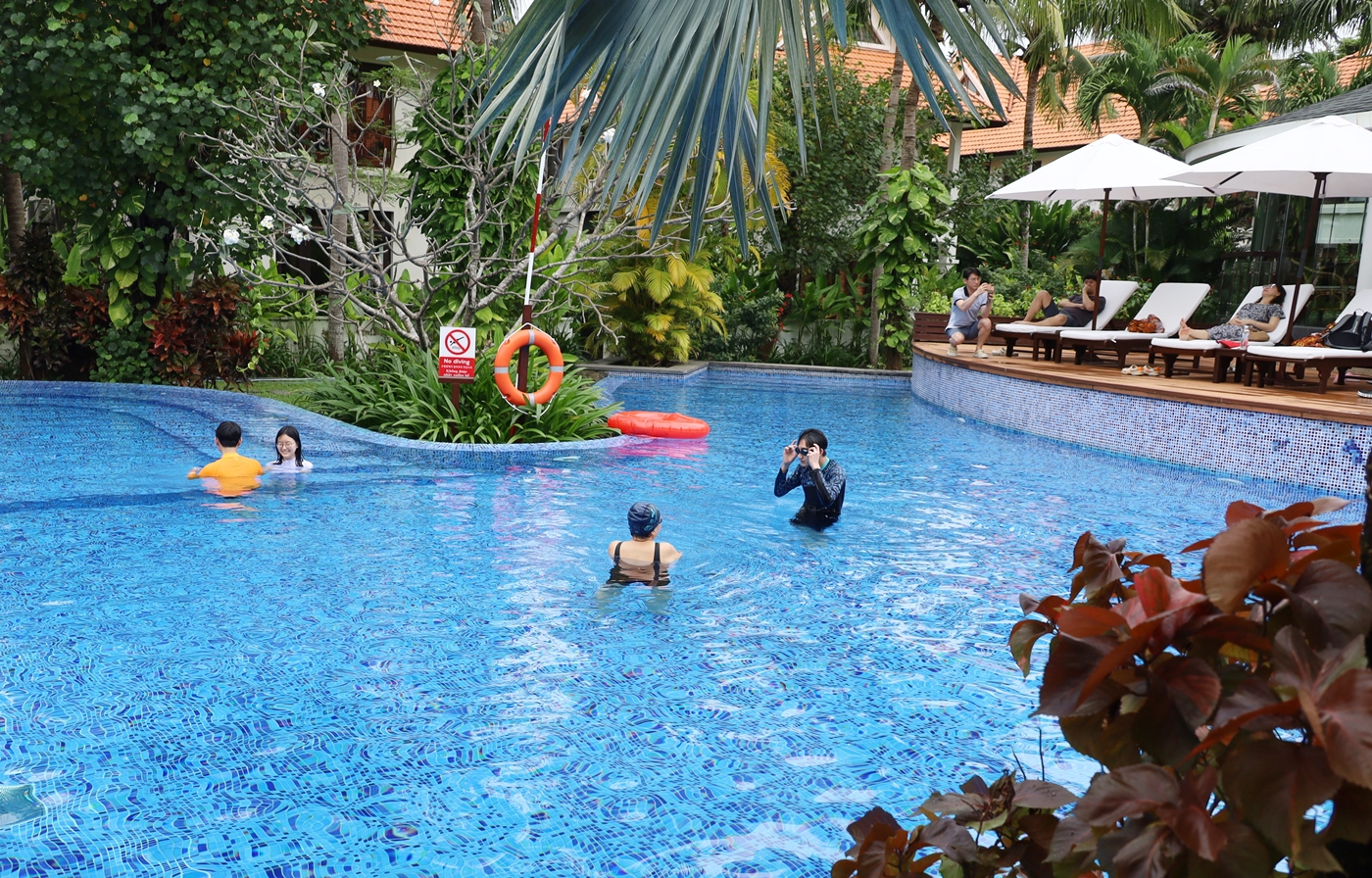 ↑푸라마 리조트 중앙에 있는 아이들이 놀고 있는 이 풀장~수심도 1.3m로 적당하여 손주들 놀기도 좋고 우리가 묵고있는 숙소에서 가까운 거리에 있어 안성 맞춤이였다.