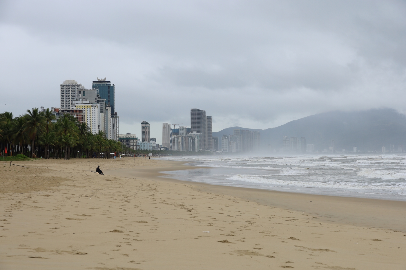 ↑이른아침 탓인가? 날씨탓인가? 관광객 하나 보이지 않는 쓸쓸한 미케비치 해변 풍경이다.